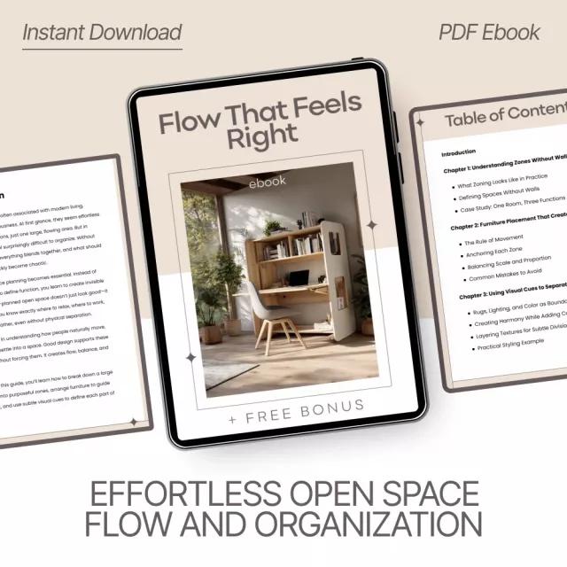 Inside this eBook, you’ll find practical, step-by-step guidance to design spaces that work for real life—without compromising style or comfort. From defining zones without walls to smart furniture placement, visual cues, and clutter-free strategies, this resource is your blueprint for an organized and visually balanced home.