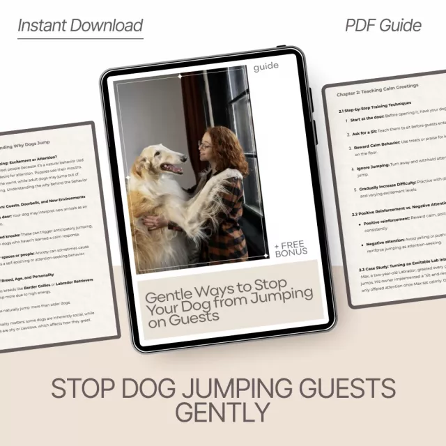 Does your dog greet every visitor like it’s the most exciting moment of their life—jumping, bouncing, and overwhelming your guests? You’re not alone. This thoughtfully designed digital guide, Gentle Ways to Stop Your Dog from Jumping on Guests, gives you clear, effective, and kind solutions to one of the most common dog behavior challenges. If you’ve been searching for how to stop a dog from jumping on guests, this guide walks you through practical, proven steps that actually work—without harsh corrections.