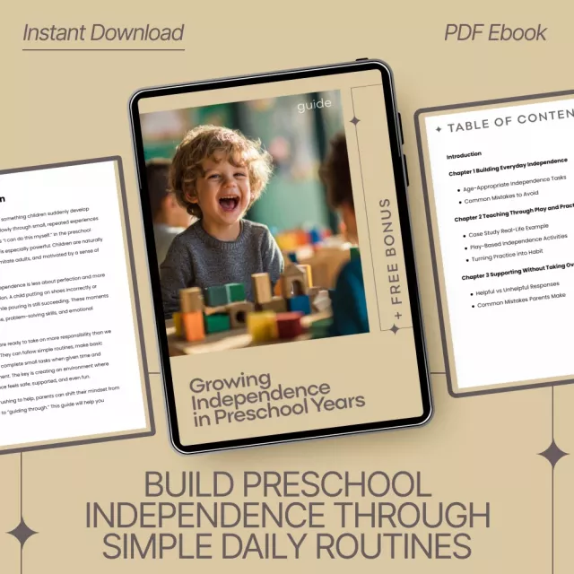 Give your child the gift of confidence and self-reliance—without the stress. Download Growing Independence in Preschool Years today and take the first step toward calmer routines, happier moments, and stronger independence skills for preschoolers.