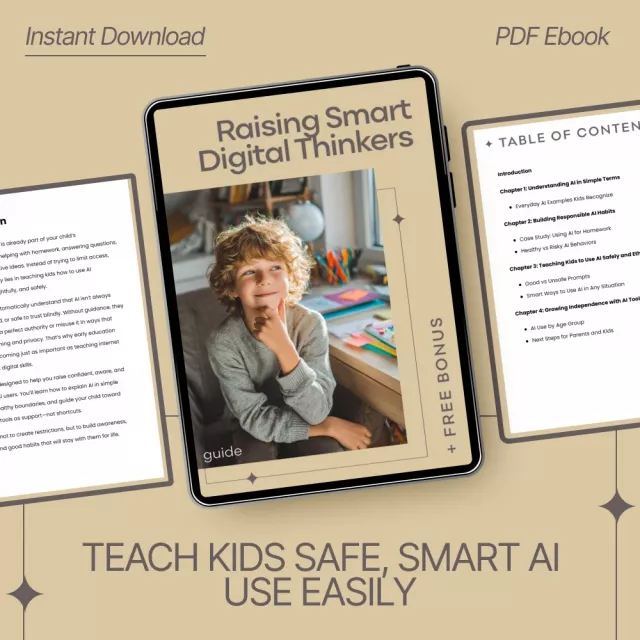 Give your child the tools they need to thrive in an AI-driven world. Download Raising Smart Digital Thinkers today and take the first step toward raising confident, responsible digital thinkers. Your future-ready family starts here.