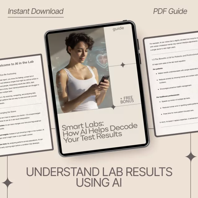 Take the guesswork out of your medical reports with Smart Labs: How AI Helps Decode Your Test Results—your practical, easy-to-follow guide to understanding lab results using modern technology. If you’ve ever felt overwhelmed by numbers, ranges, or medical jargon, this digital download shows you exactly how ai for decoding lab results can simplify the process and give you clarity in minutes instead of hours. Designed for everyday users and professionals alike, this guide transforms complex data into meaningful insights you can actually use.
