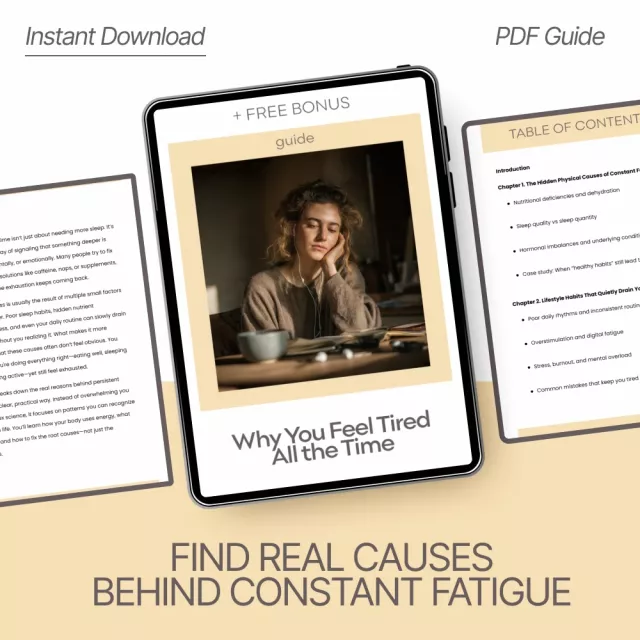 If you’ve ever wondered why you wake up tired, hit an afternoon slump, or feel constantly drained no matter how “healthy” your habits are, this guide was made for you. Why You Feel Tired All the Time is a powerful, easy-to-follow digital resource designed to uncover the real reasons behind low energy and help you fix them with simple, sustainable systems. Instead of generic advice, you’ll discover what actually drives fatigue—physically, mentally, and emotionally—so you can finally break the cycle.