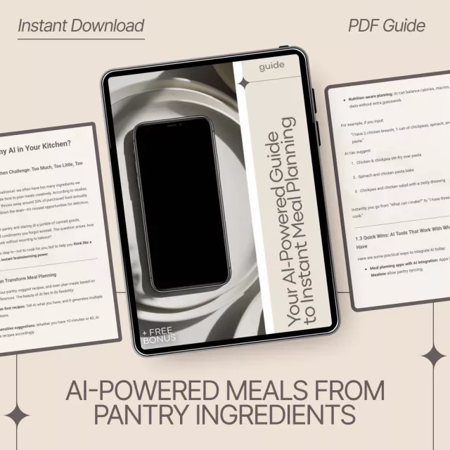 Tired of staring into your pantry and wondering what to cook? Your AI-Powered Guide to Instant Meal Planning is your step-by-step solution to turning everyday ingredients into delicious, balanced meals—without the stress, waste, or endless scrolling. Designed for modern households, this digital guide shows you exactly how to use an ai meal planner from pantry to create meals instantly from what you already have. Whether you’re juggling a busy schedule or simply want to waste less food, this guide helps you cook smarter, not harder.